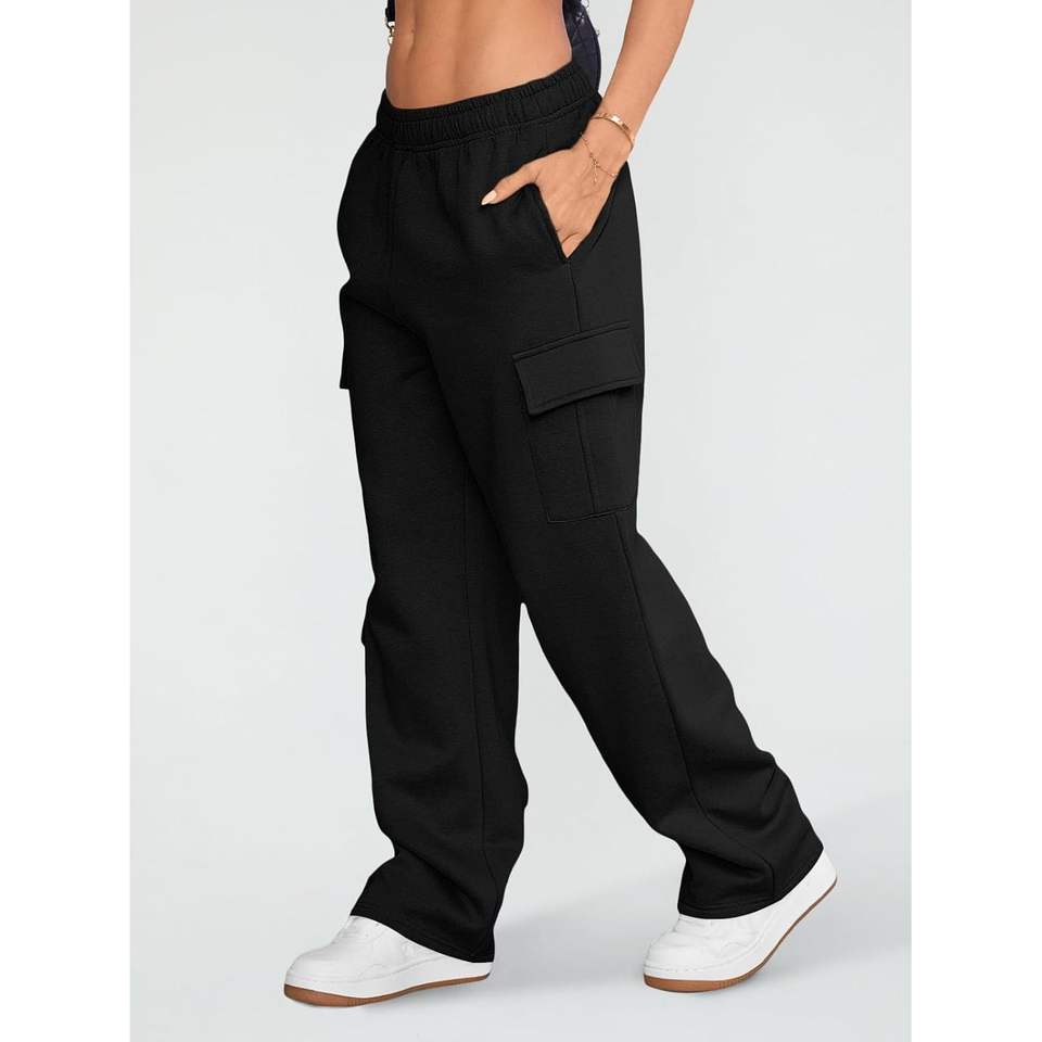 2025 pantalones de chándal Cargo para mujer, pantalones de chándal Y2K forrados de lana de pierna ancha con bolsillos, cintura media, talla XL para Otoño Invierno