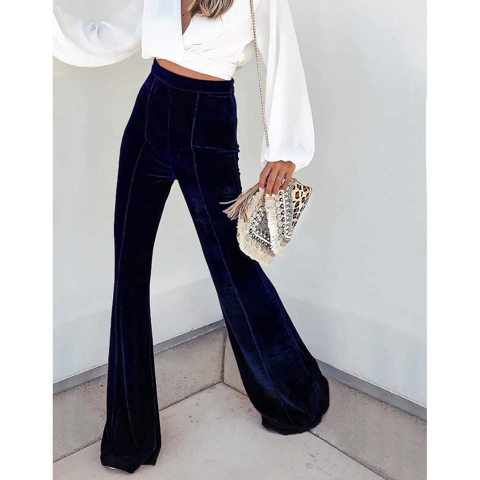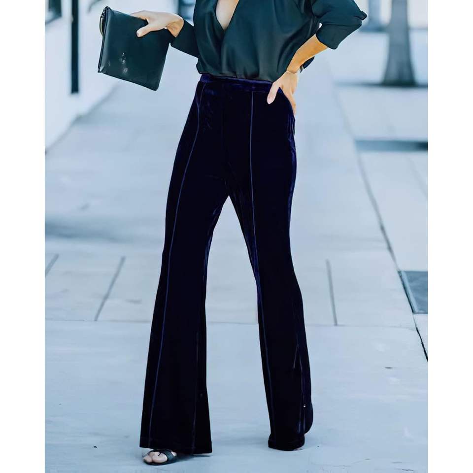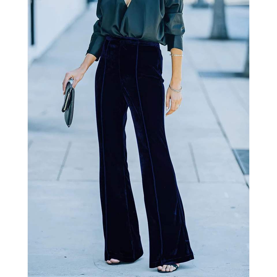 Viatabuna, pantalones Palazzo de pierna ancha con parte inferior de campana informal para mujer, pantalones largos de terciopelo de cintura alta con ropa de calle transpirable
