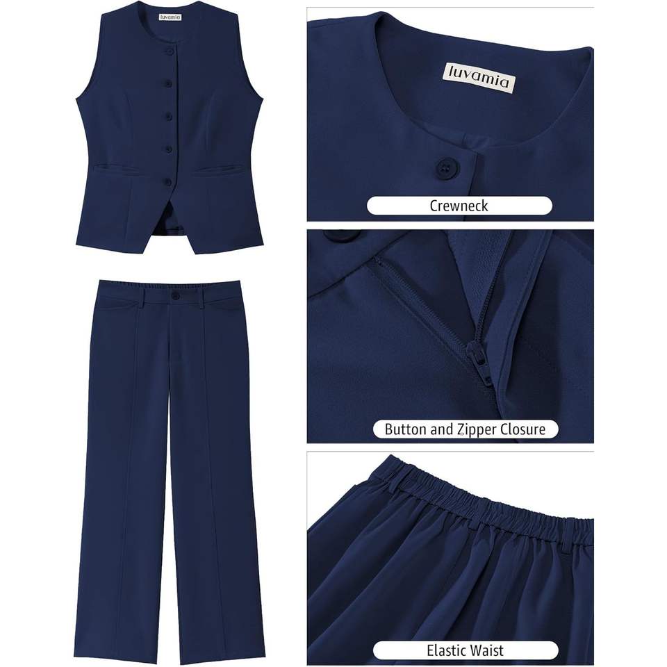 2025 trajes informales formales de negocios de 2 piezas para mujer, chaqueta sin mangas y pantalones de pierna ancha, traje elegante, pantalones tipo chaleco