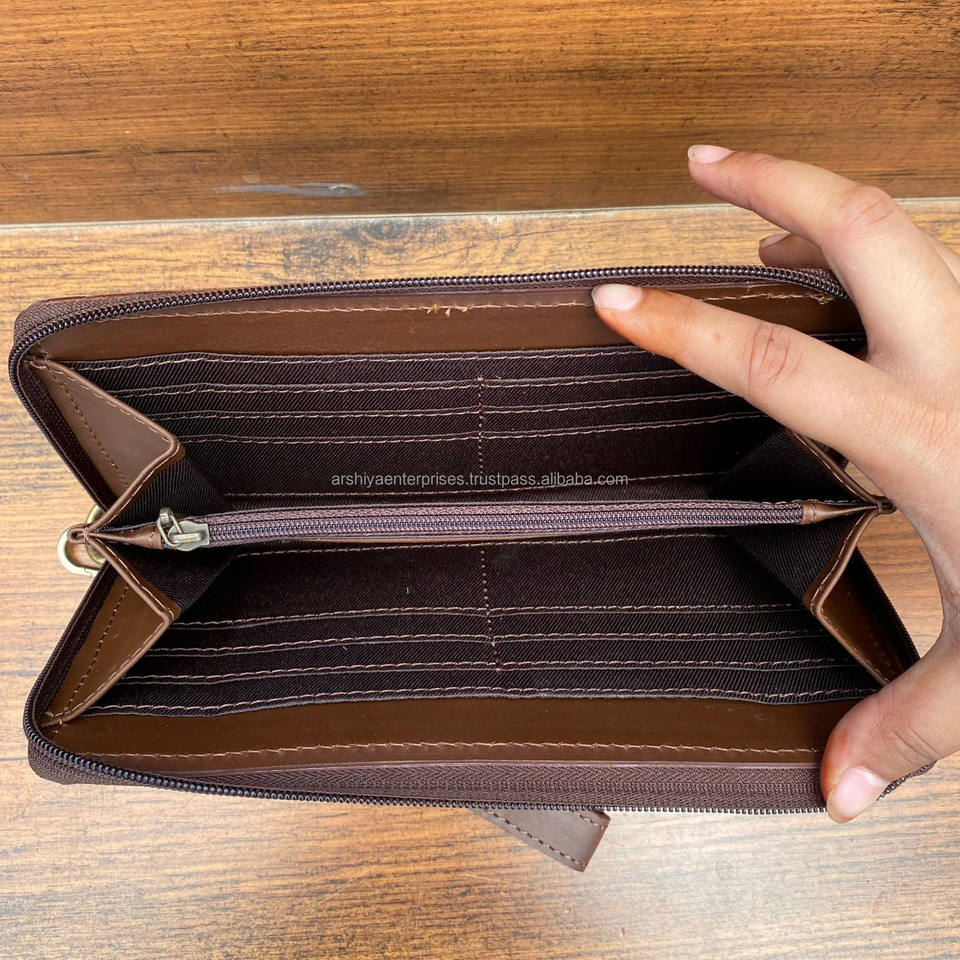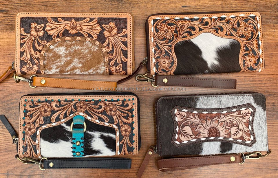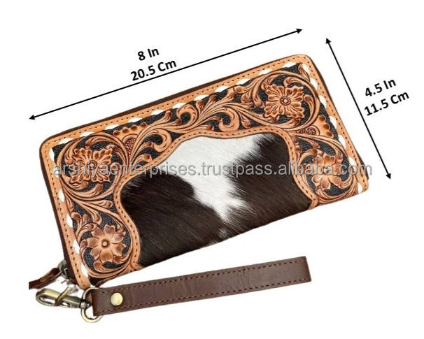 Product Name:Hand Tooled Cowhide Leather Wristlet Zipper Wallet