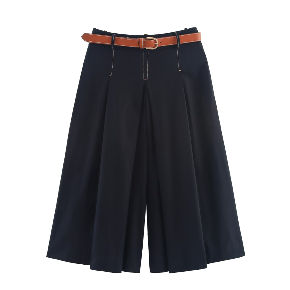 2025 pantalones cortos con cinturón plisado de cintura alta para mujer estilo europeo y americano Simple Casual