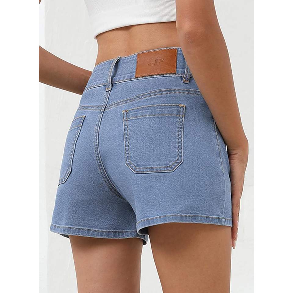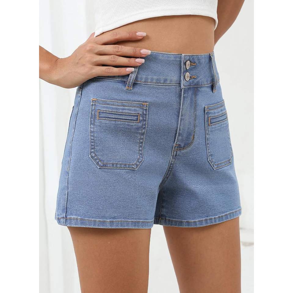 2025 pantalones cortos vaqueros de cintura alta para mujer, pantalones cortos elásticos de cintura media con Control de barriga, pantalones cortos vaqueros Vintage de verano con botones Sexy