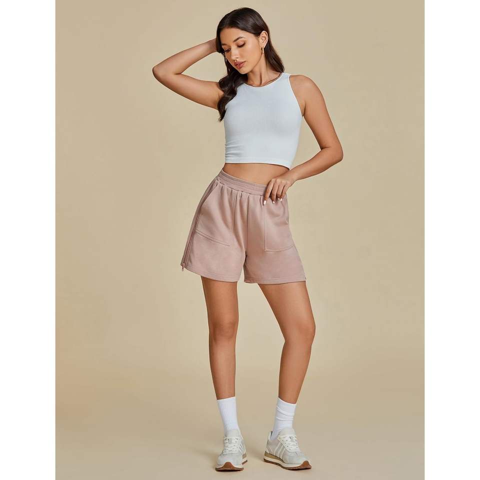 2025 pantalones cortos de chándal con cremallera lateral de cintura alta para mujer Casual Lounge algodón verano Athleisure bolsillos XS tamaño patrón caliente