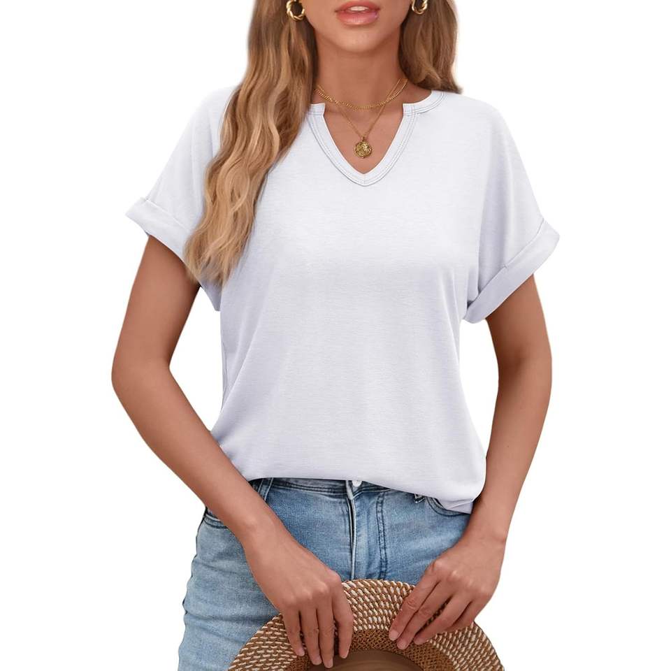 2025 camisetas de gran tamaño con cuello en V para mujer, blusas informales elegantes de manga corta a la moda, trajes Y2K de verano 2024 en tallas XS XXS XL