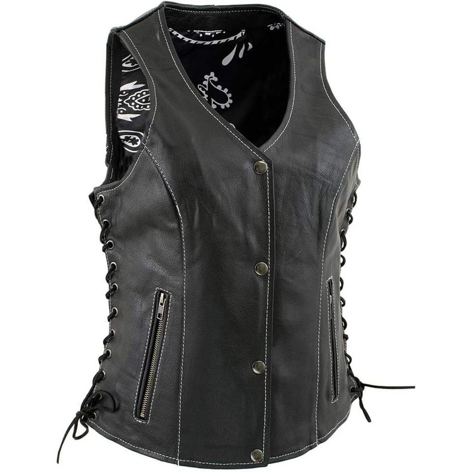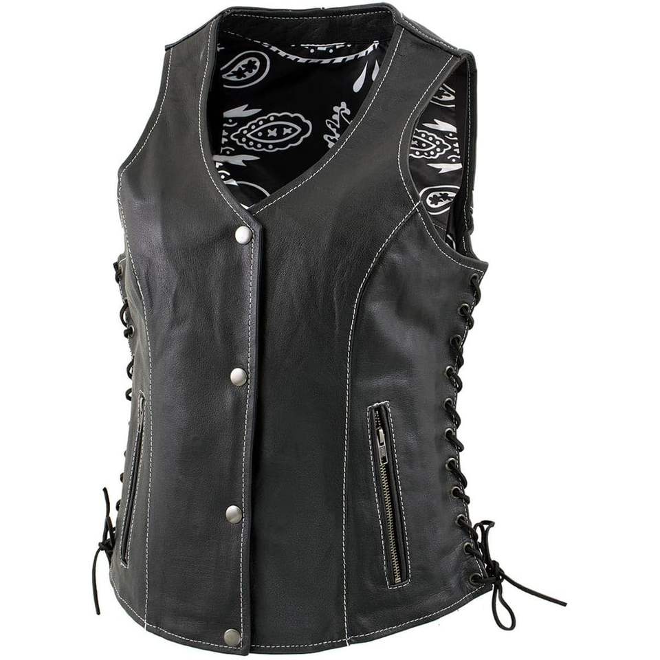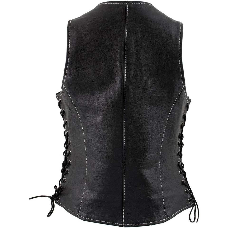 Chaleco de Motociclista de Cuero Negro Premium para Mujer 2025 con Ajuste Lateral de Cordones LKL4711