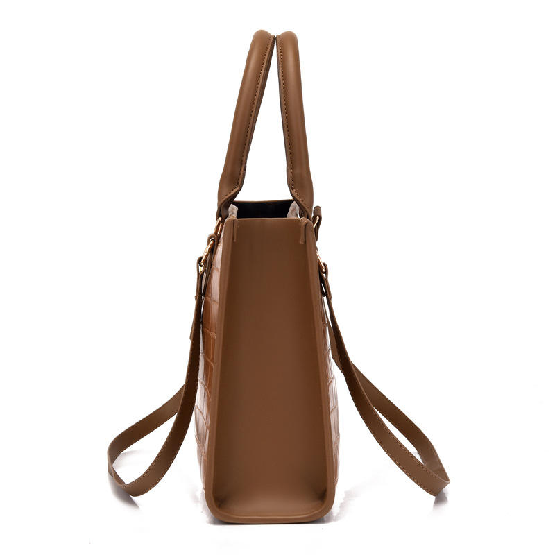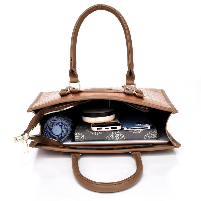 2025 Bolso grande de PU de moda Retro para mujer, tipo bandolera bolso de hombro, cierre de cremallera, dos asas, venta al por mayor, bolso de mano de poliéster