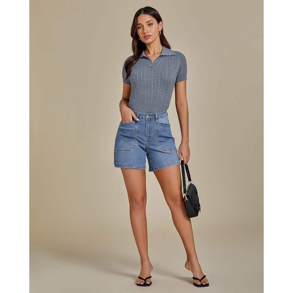 2025 pantalones cortos vaqueros de mezclilla informales de tiro medio a la moda para mujer, ajustados, desgastados, cortados con bolsillos de decoración de botones