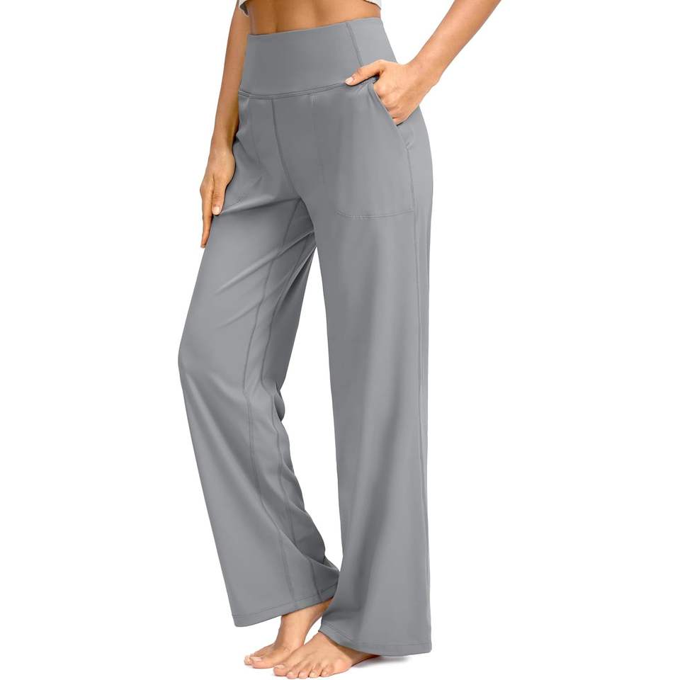 2025 pantalones de Yoga de pierna ancha para mujer bolsillos pantalones de chándal de salón de cintura alta pantalones de vestir pequeño/alto 30 \ "color claro 30 colores