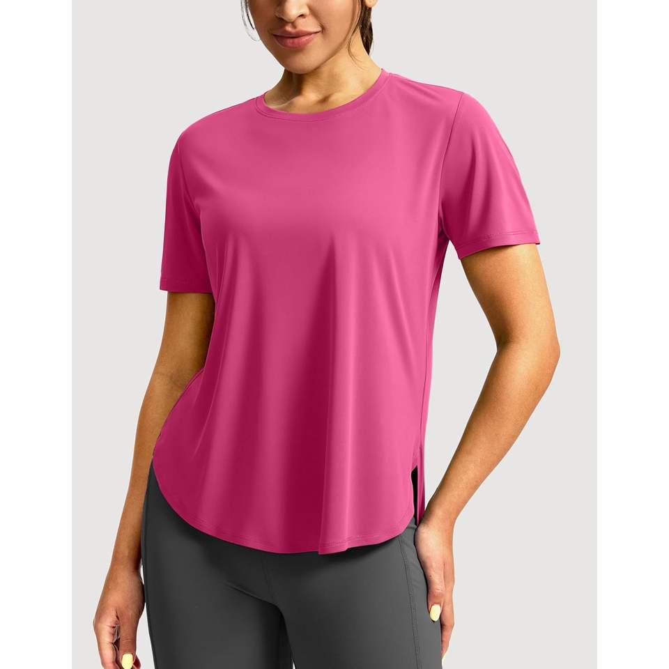 2025 camisetas de entrenamiento para mujer UPF 50 + protección solar manga corta suelta ajuste Atlético gimnasio correr Tops en rosas tallas XS XXS