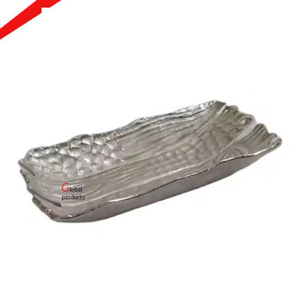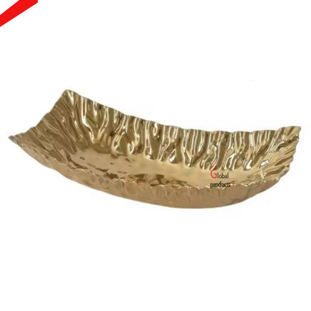 2025 hermoso plato de servicio de aluminio y metal con forma de hoja con acabado dorado para hotel, hogar, restaurante y bar
