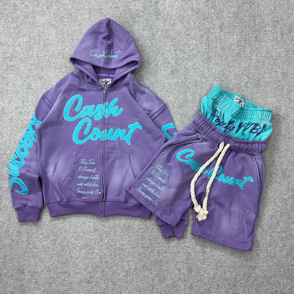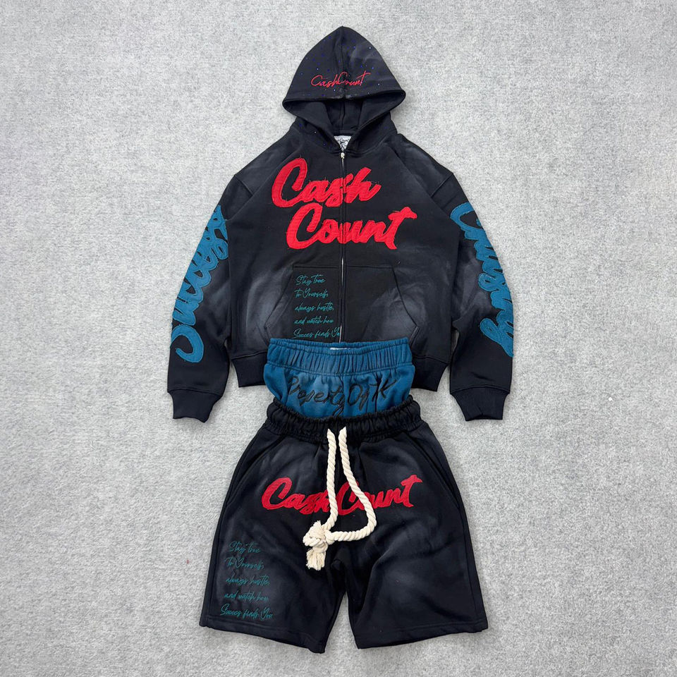 2025 nuevo diseño Tech Fleece bordado completo Sudadera con capucha Jogger chándales para hombres logotipo personalizado lavado ácido ropa deportiva chándales