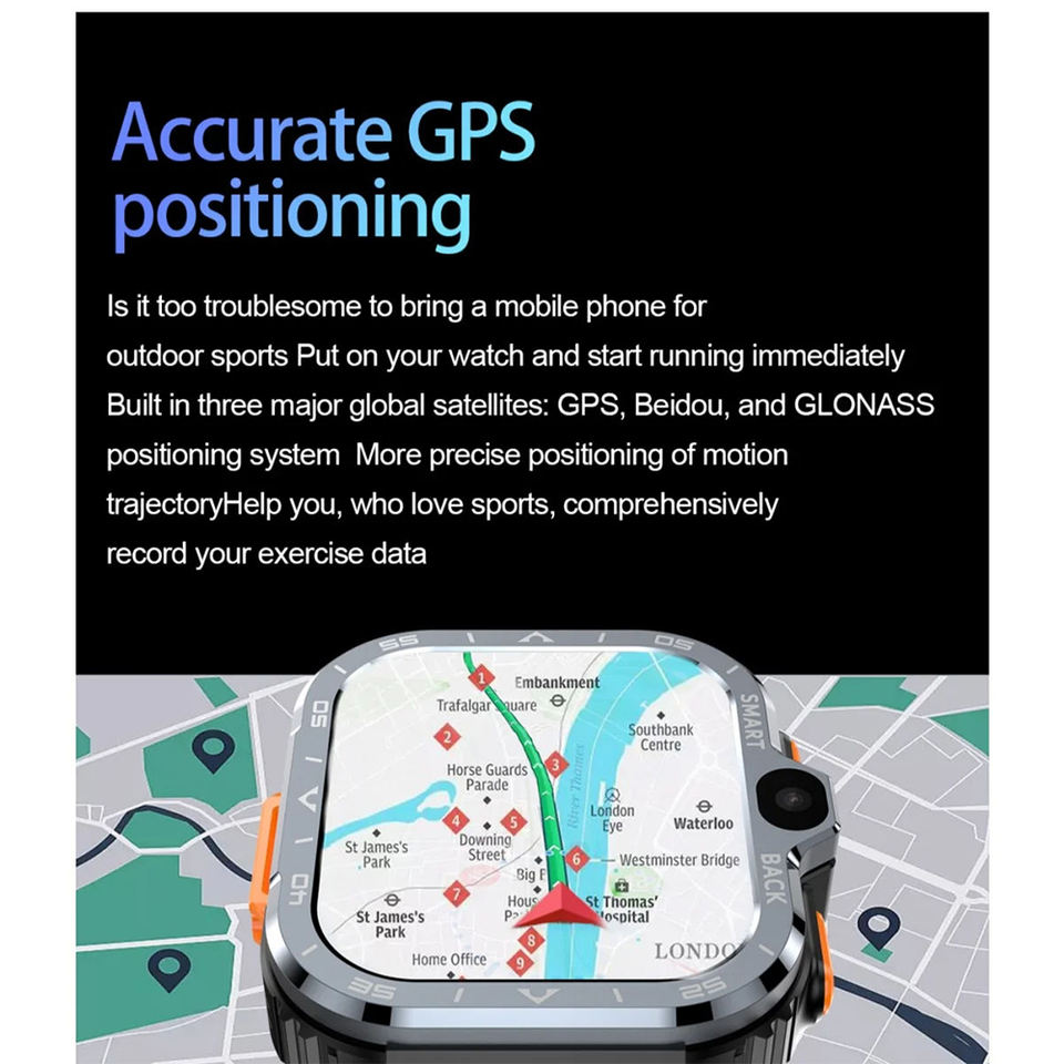 Reloj Inteligente con Tarjeta SIM 4G 2026, Pantalla de 2.03 Pulgadas, Cámara Dual, Videollamada, GPS, WiFi, Monitor de Frecuencia Cardíaca para Hombres con IOS y Android