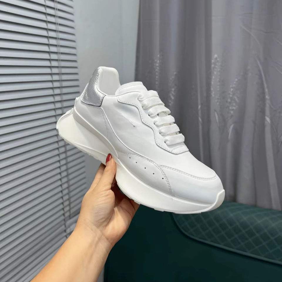 2026 Alexander Tendencia de Moda Primavera Zapatillas de Caña Alta Ligeras con Interior de Cuero Genuino Mc, con Aumento de Altura, Diseño Cola de Escorpión, Blancas Queen