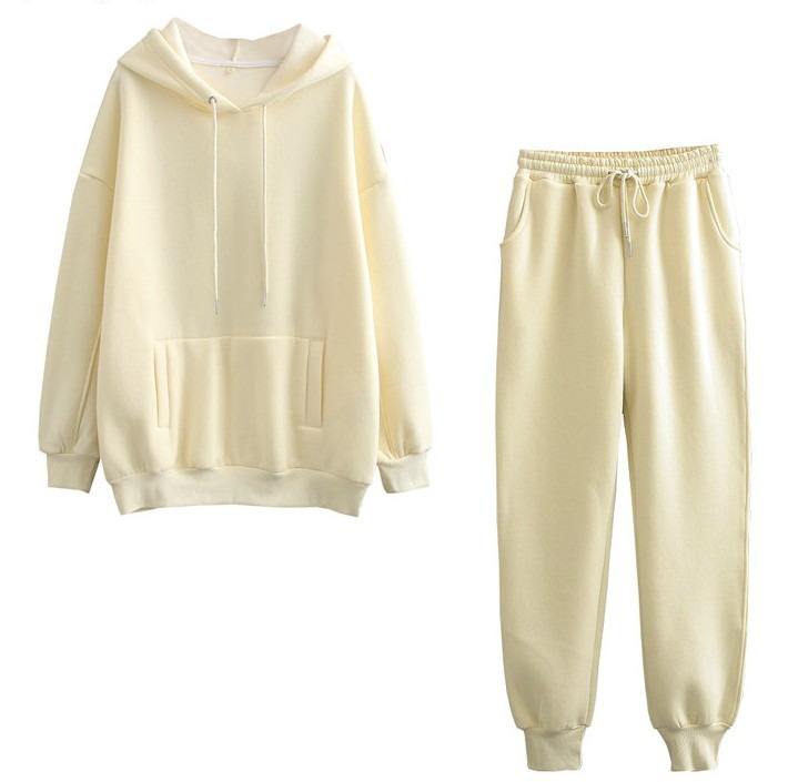 Conjunto de Sudadera con Capucha y Pantalones de 2 Piezas para Mujer, Otoño Invierno 2026, Estampado Informal, Felpa Gruesa, 100% Algodón