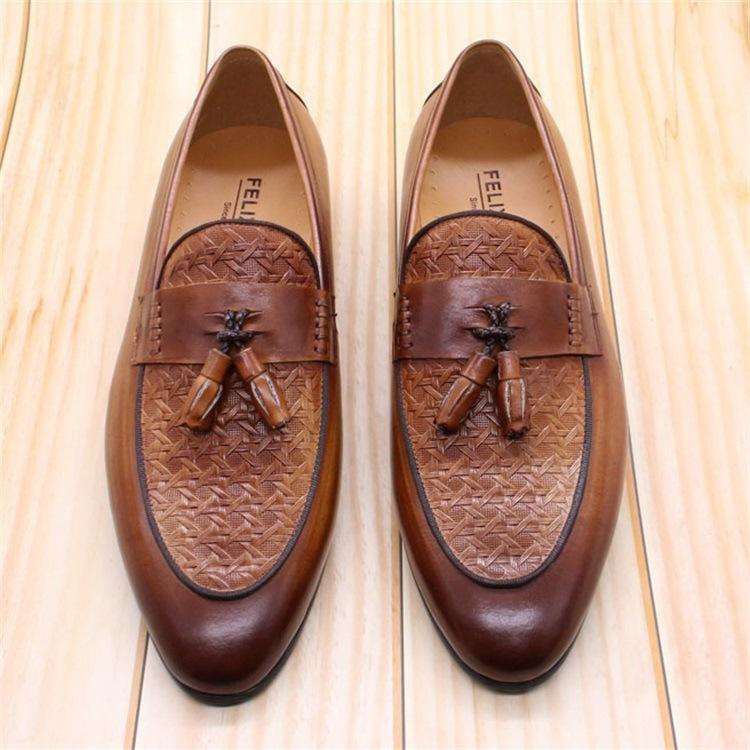 2026 Best-Selling Embossed Fringed Men's Casual Shoes Breathable Leather Shoes Hand-Carved Men's leather Dress Shoes&Oxfords
