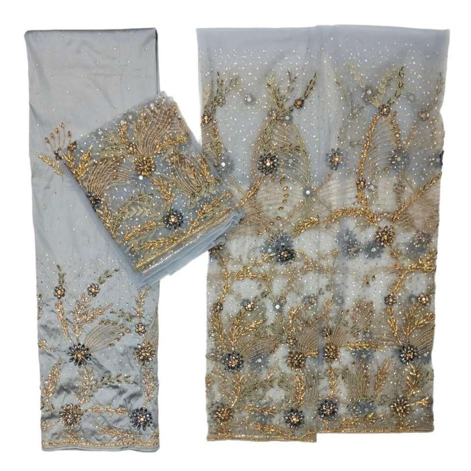 Vestido de Novia Africano Estilo Nigeriano con Cuentas Hechas a Mano, Detalles en Oro, Patrón Floral Abstracto, Tejido Ecológico 100% Poliéster