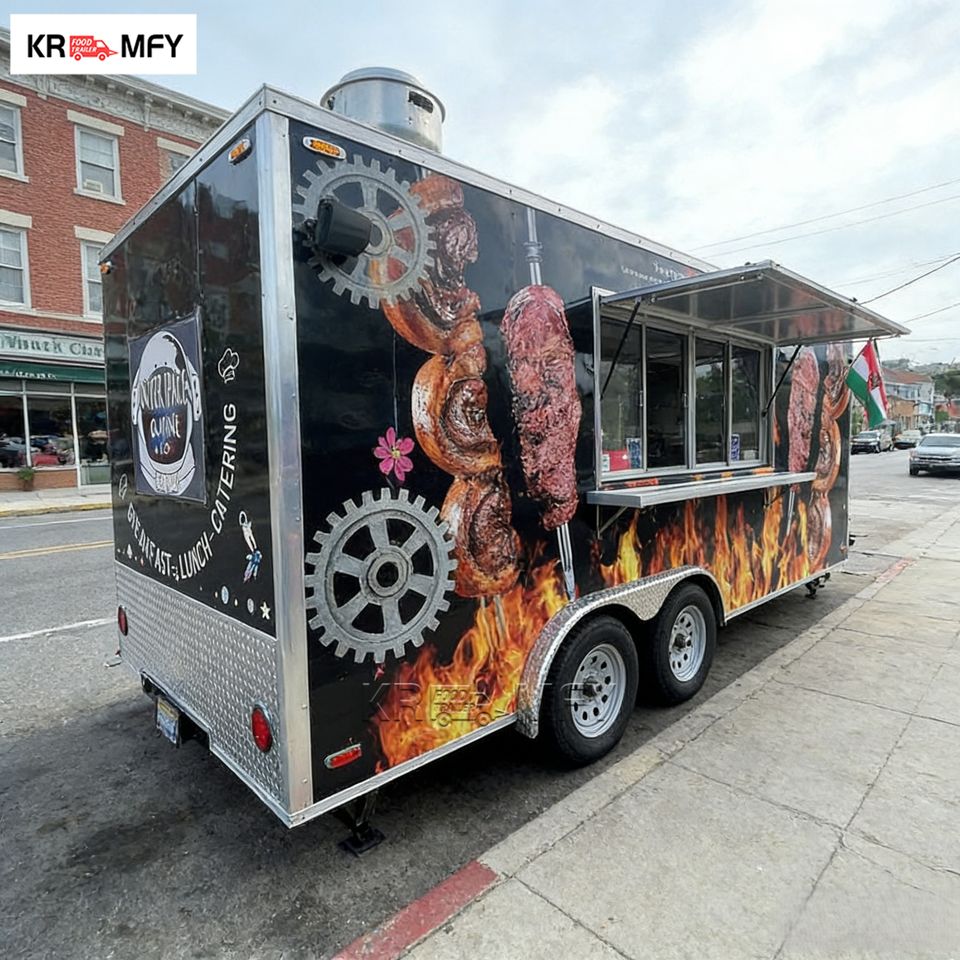 Remolque de Comida Móvil de Acero Inoxidable, Fibra de Vidrio y Aluminio, Color Personalizado 2026, Totalmente Equipado con Cocina Móvil y Frituras