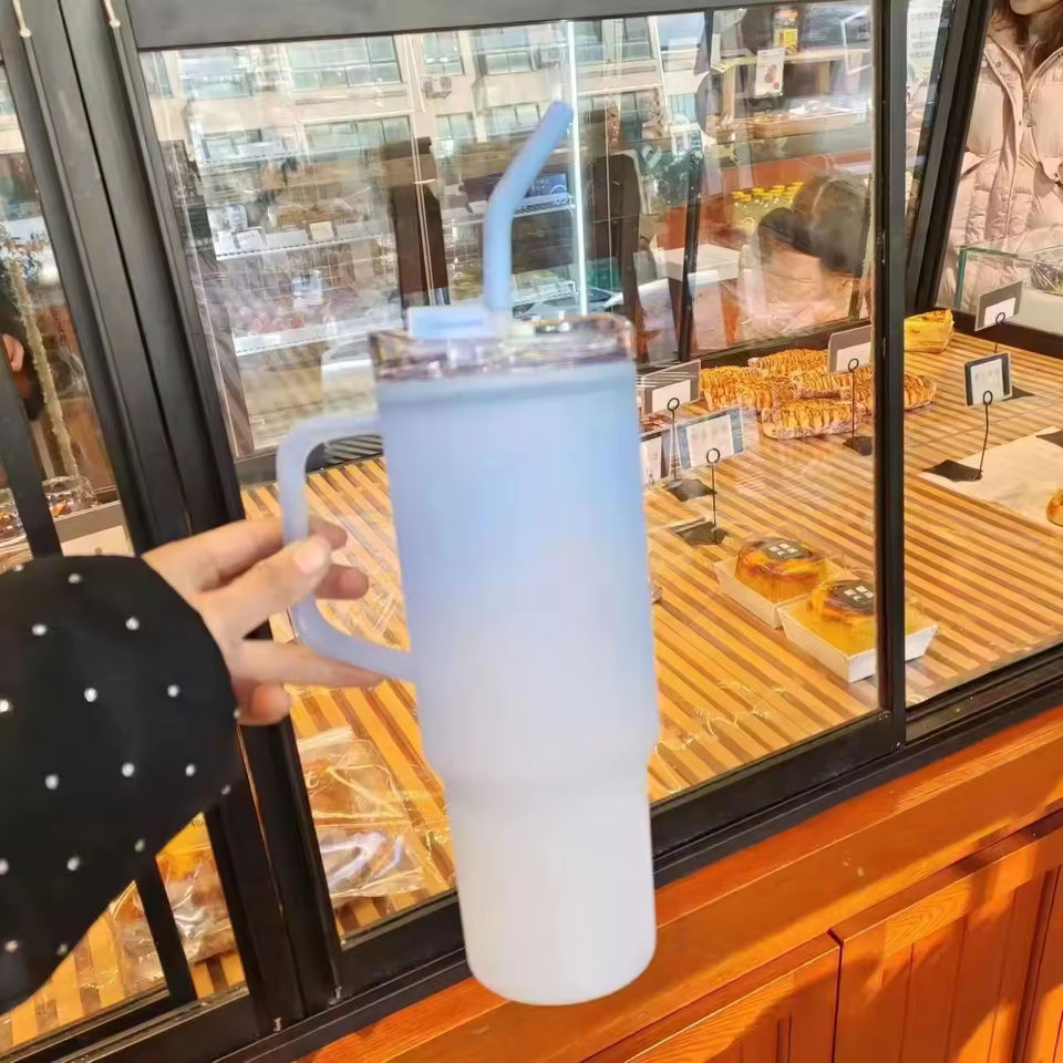 Taza degradada esmerilada de gran capacidad personalizada 2026, juego de 3 piezas, taza para coche con asa y pajita, botella de agua deportiva de viaje