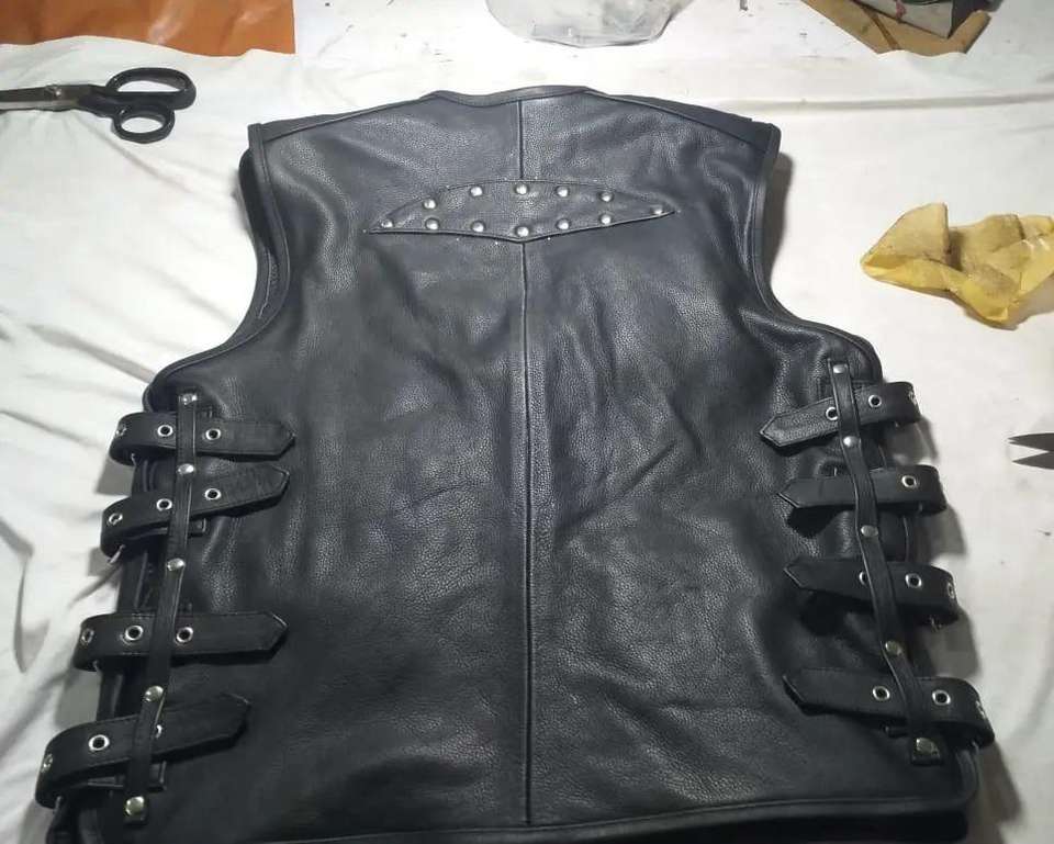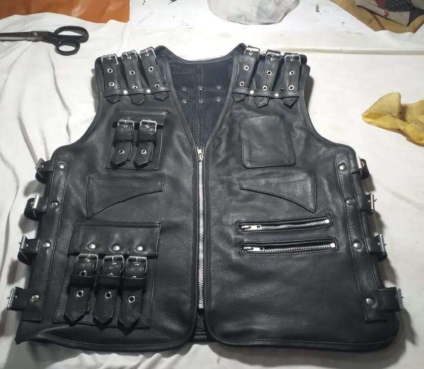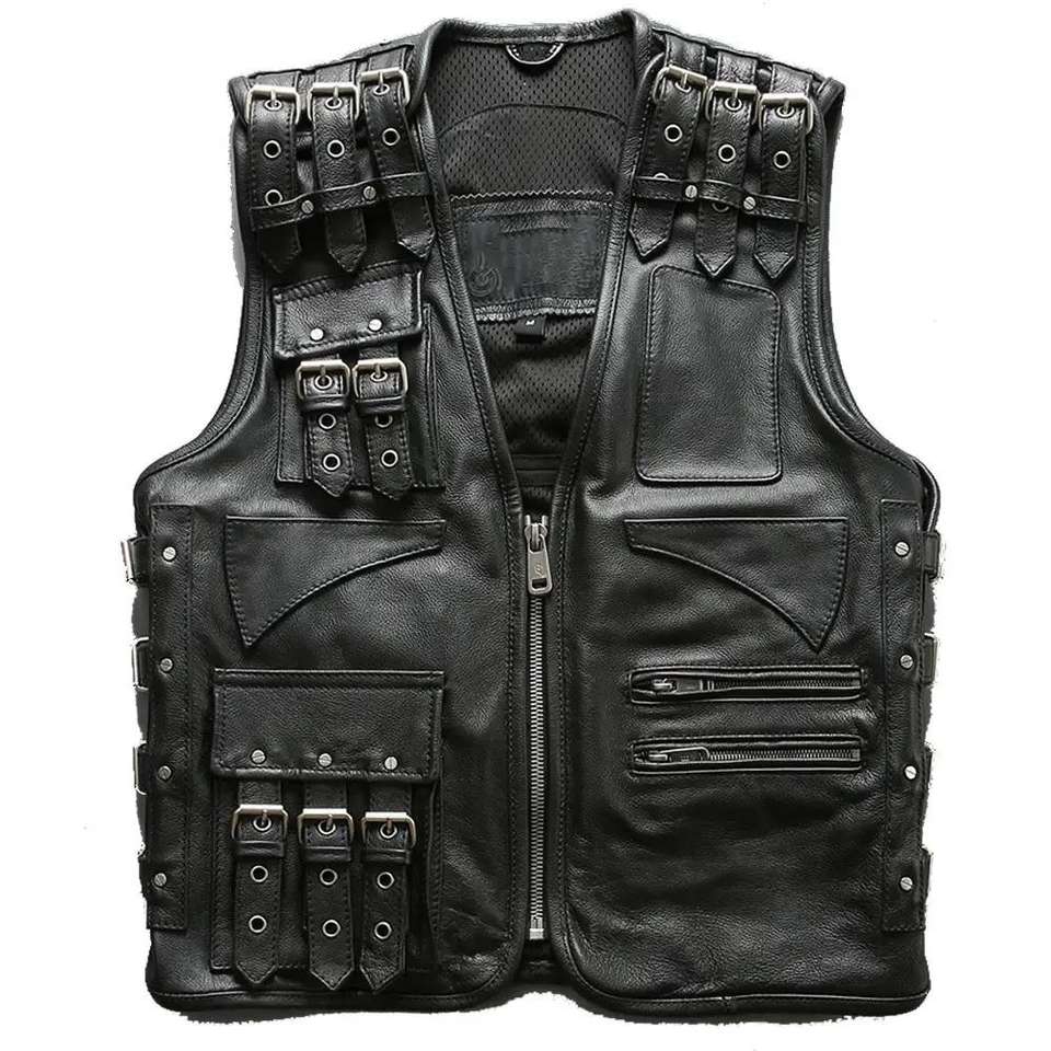 Chaqueta / Chaleco sin mangas de cuero genuino para hombre