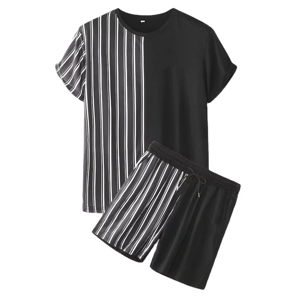 Conjunto de Camiseta y Pantalones Cortos a Rayas con Parches para Hombre, Estilo Casual de Verano, Dos Piezas, Ropa Transpirable de Calle, 2026