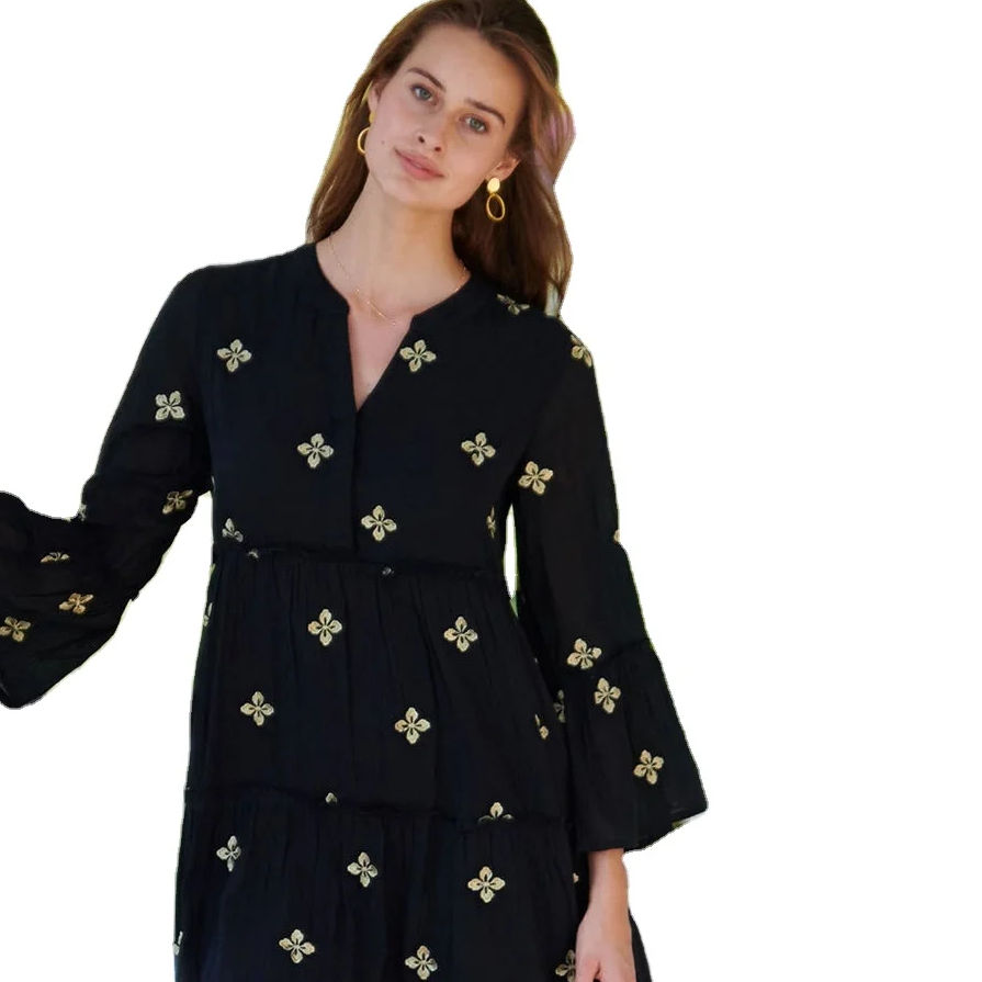 Ropa de Club Personalizada 2026 con Bordado Floral, Manga Larga, Sexy y Mini para Mujer