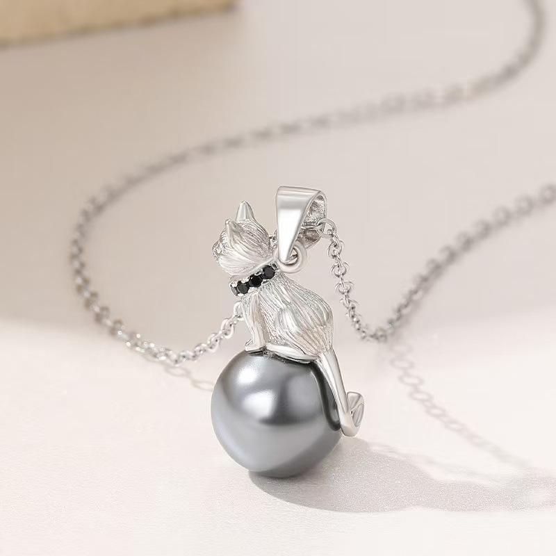 Collares de Circonita Bonitos 2026, Collar con Colgante de Perla de Concha, Gargantilla de Gato para Mujer, Mamá de Gato