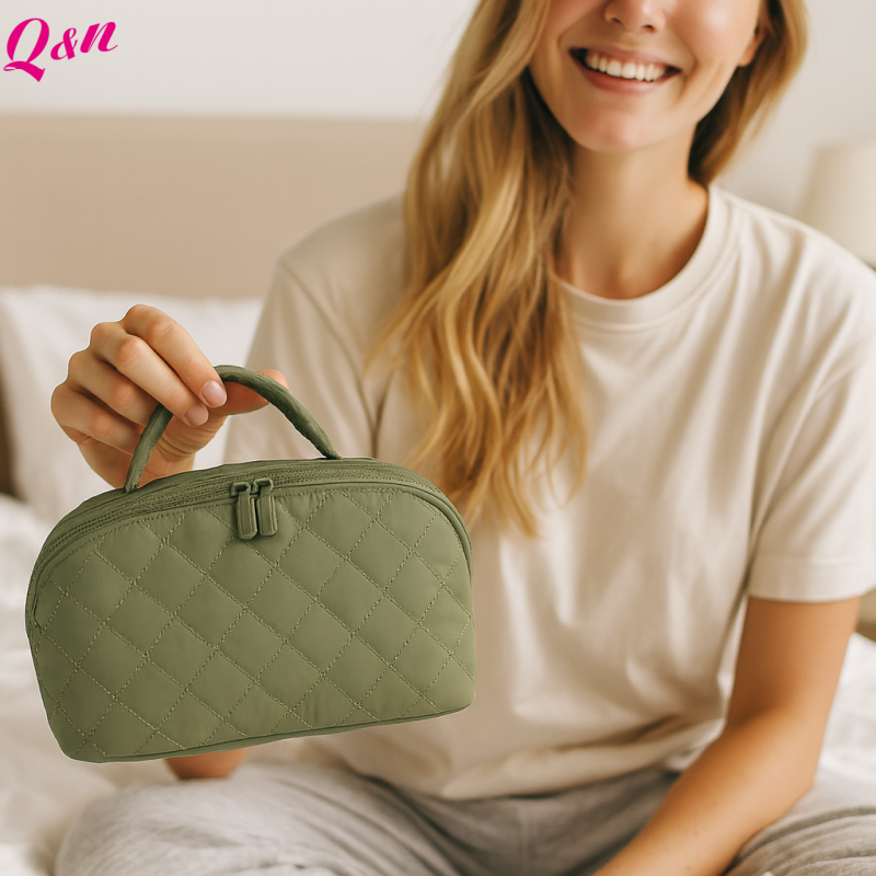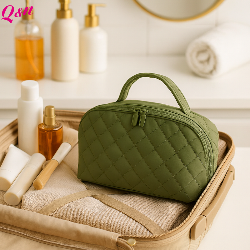 Bolsa de Maquillaje de Viaje Ecológica, Duradera y de Gran Capacidad para Mujer, con Cierre de Cremallera, Asa Suave y Compartimentos (Verde)