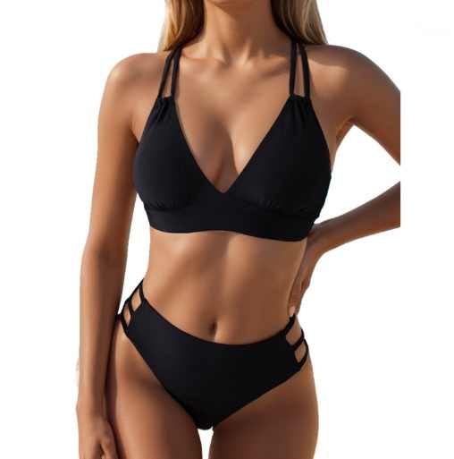 Traje de Baño Bikini 2026, Nuevo, Estilo Europeo y Americano, Color Sólido, Cuello en V, Sexy, Bikini Dividido para Mujer