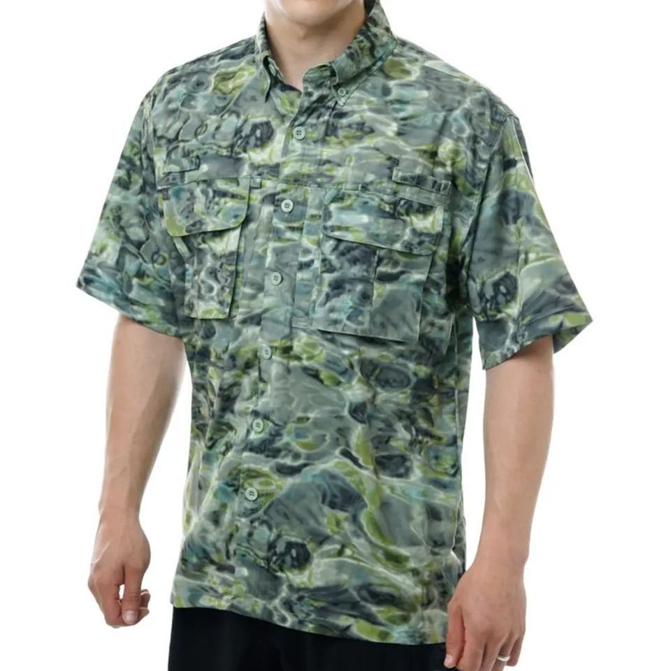 Camisas con Estampado de Peces 2026, Ventiladas, de Secado Rápido, UPF 50, Ropa de Pesca con Bolsillo en el Pecho con Botón, Estampado de Camuflaje/Ropa de Pesca