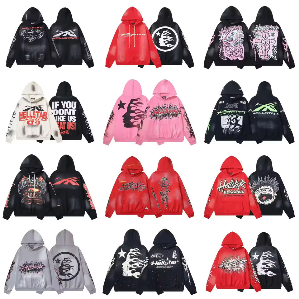 Nueva Colección Hell Star 2026, Estilo Urbano, Sudadera de Lana/Viscosa con Media Cremallera para Hombre y Mujer, Estilo Gótico, Liso, Teñido, Impresión Digital
