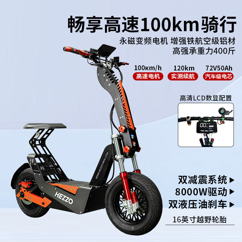 Patinete Eléctrico Plegable Hezzo 2026 de 16 Pulgadas, 10000W, Batería de Litio 72V 50ah, Neumáticos 21700, Modelo F8