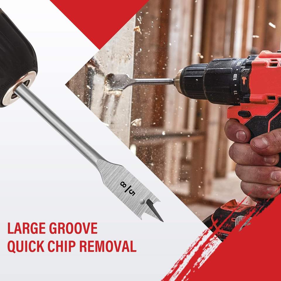 Juego de Brocas Planas para Madera de Alta Calidad 2026, con Vástago Hexagonal de 7/8'' y Cambio Rápido, Tri-Point