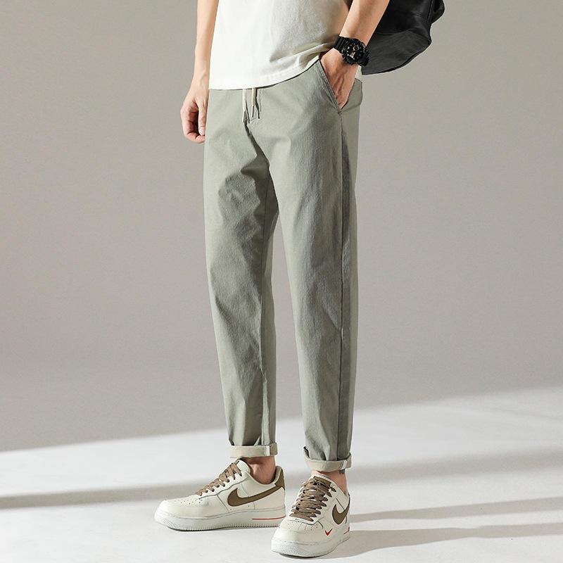 Pantalones Casuales Ajustados de Algodón de Color Sólido de Alta Calidad para Hombre, Pantalones Ajustados de Moda para Primavera 2026