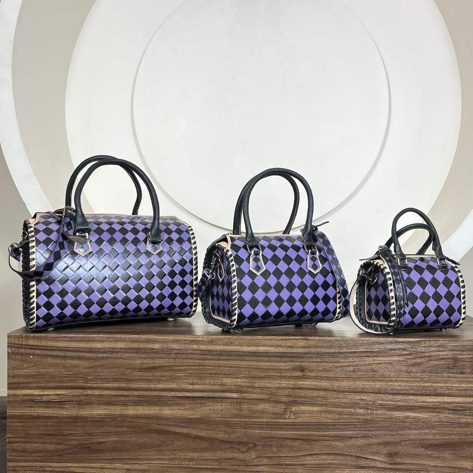 Product name:Hand Tooled Checkered Leather Large Speedy Bags