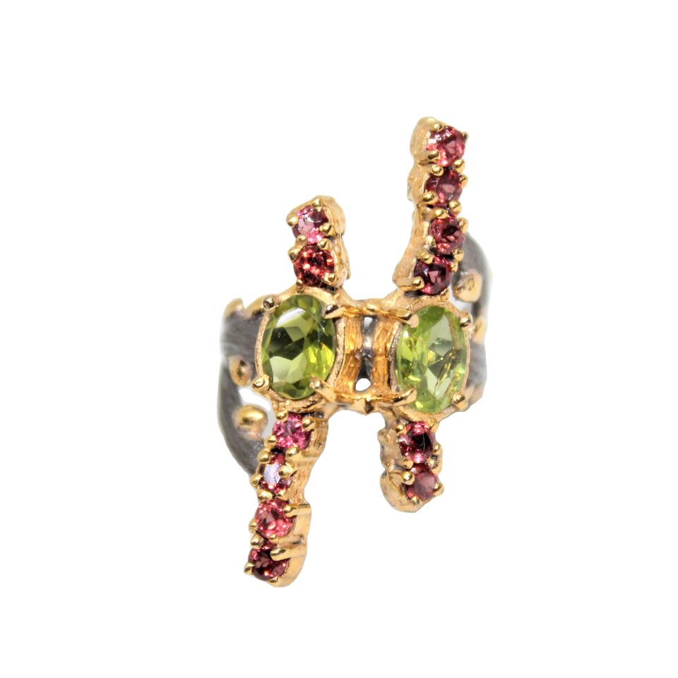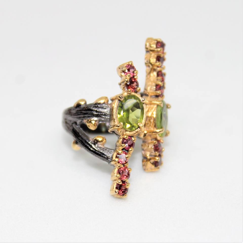 Anillo de Plata de Ley 925 con Peridoto y Granate, Chapado en Oro y Rodio, con Múltiples Piedras Preciosas, Gran Venta 2026
