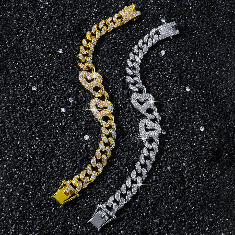 Pulsera de Cadena con Corazón de Aleación y Diamantes de Imitación, Estilo Hiphop Urbano, para Hombre, Joyería de Moda al por Mayor, Venta Caliente 2026