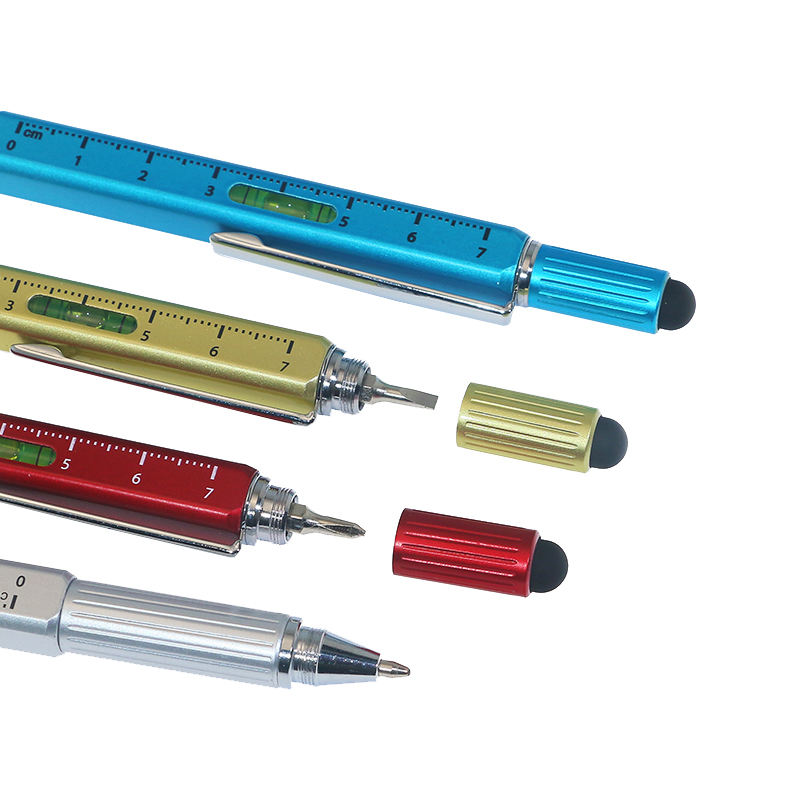 Bolígrafo multifunción 6 en 1 con regla, nivel, destornillador de dos cabezales y lápiz óptico.Nombre del producto