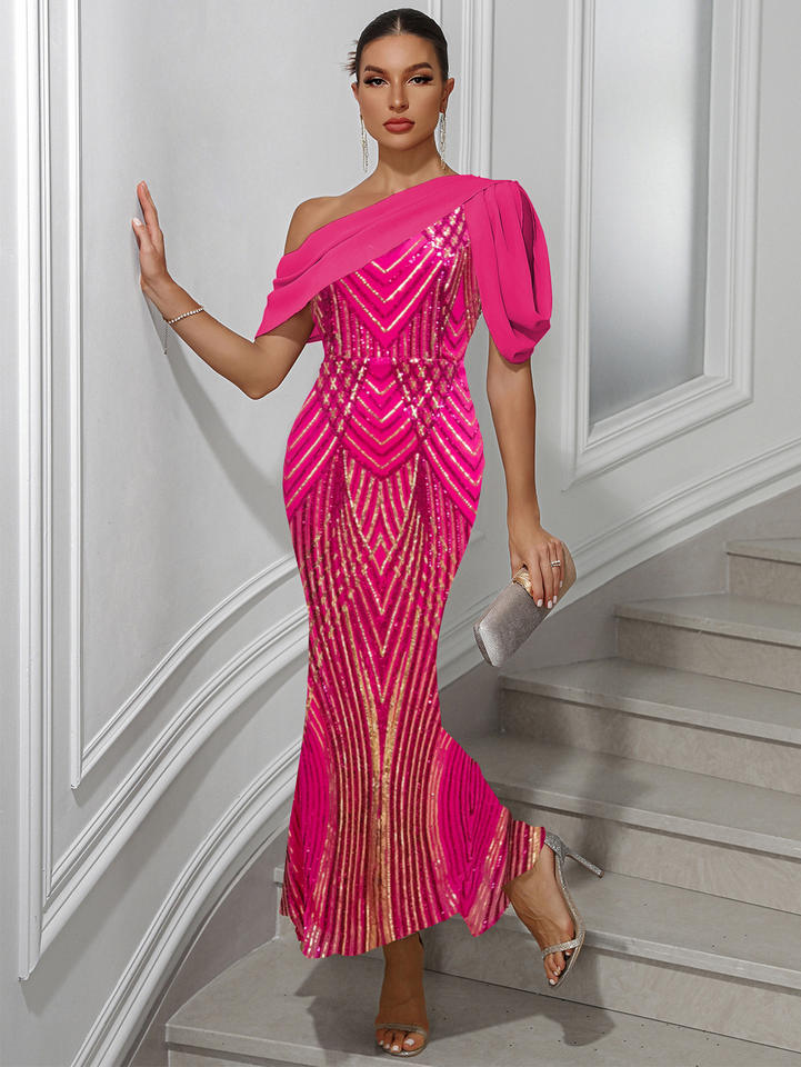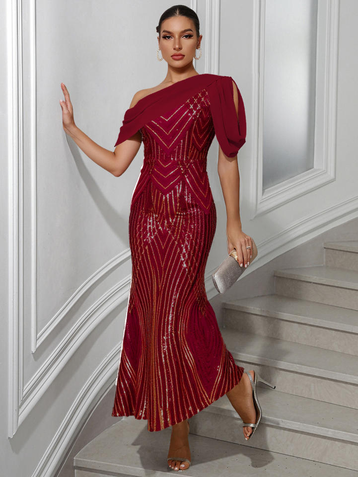 Vestido de Fiesta Sirena de Satén para Mujer, Estilo Europeo Americano, Novedad 2026, de un Solo Hombro, Largo hasta el Suelo, en Stock, ¡Gran Venta!