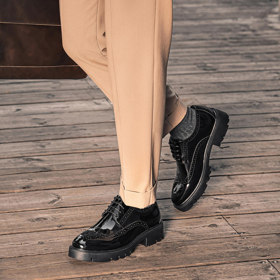 Zapatos de Hombre con Aumento de Altura Invisible de 8 cm, Modelo Brogue, para Bodas y Eventos Formales, de Cuero Charol, 2026