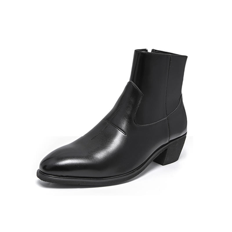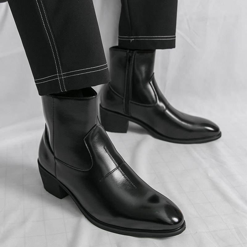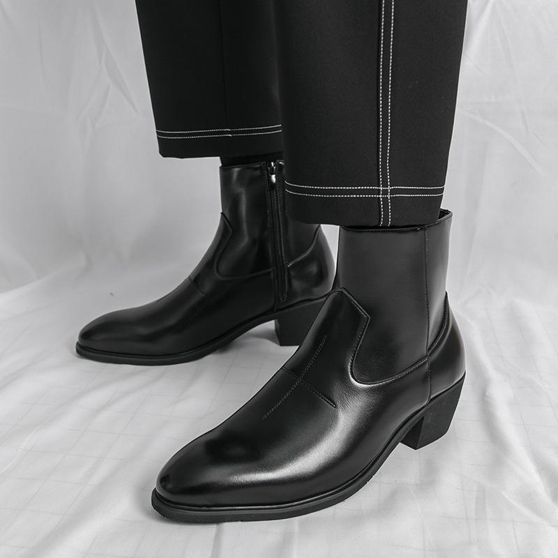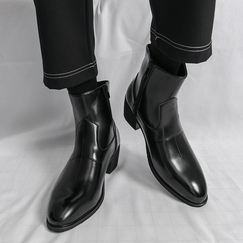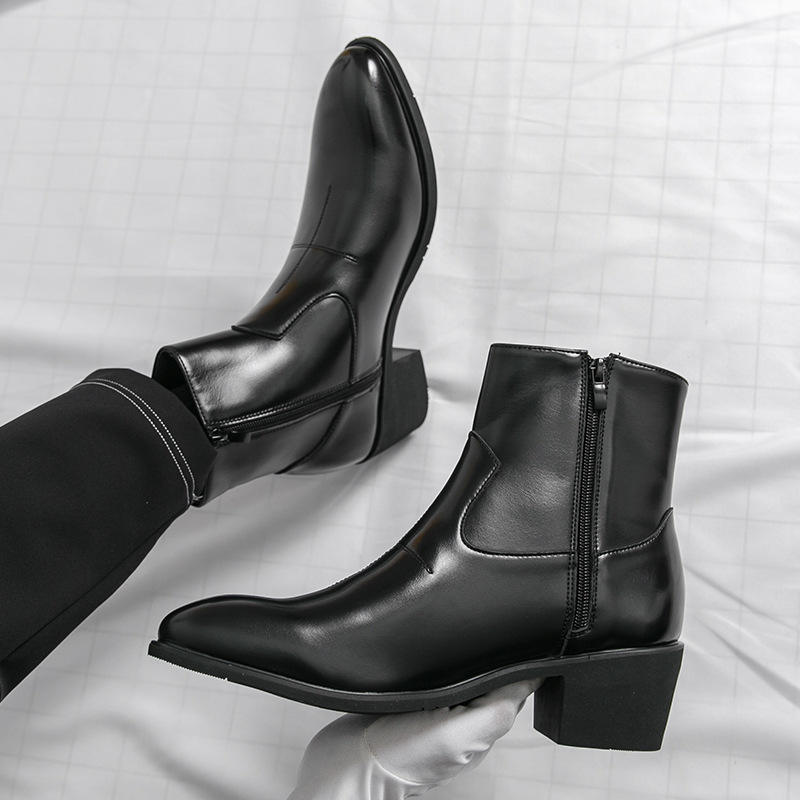 Botas de Tobillo con Aumento de Altura Invisible para Hombre, Estilo Coreano 2026 | Botas cortas negras con cremallera y punta puntiaguda