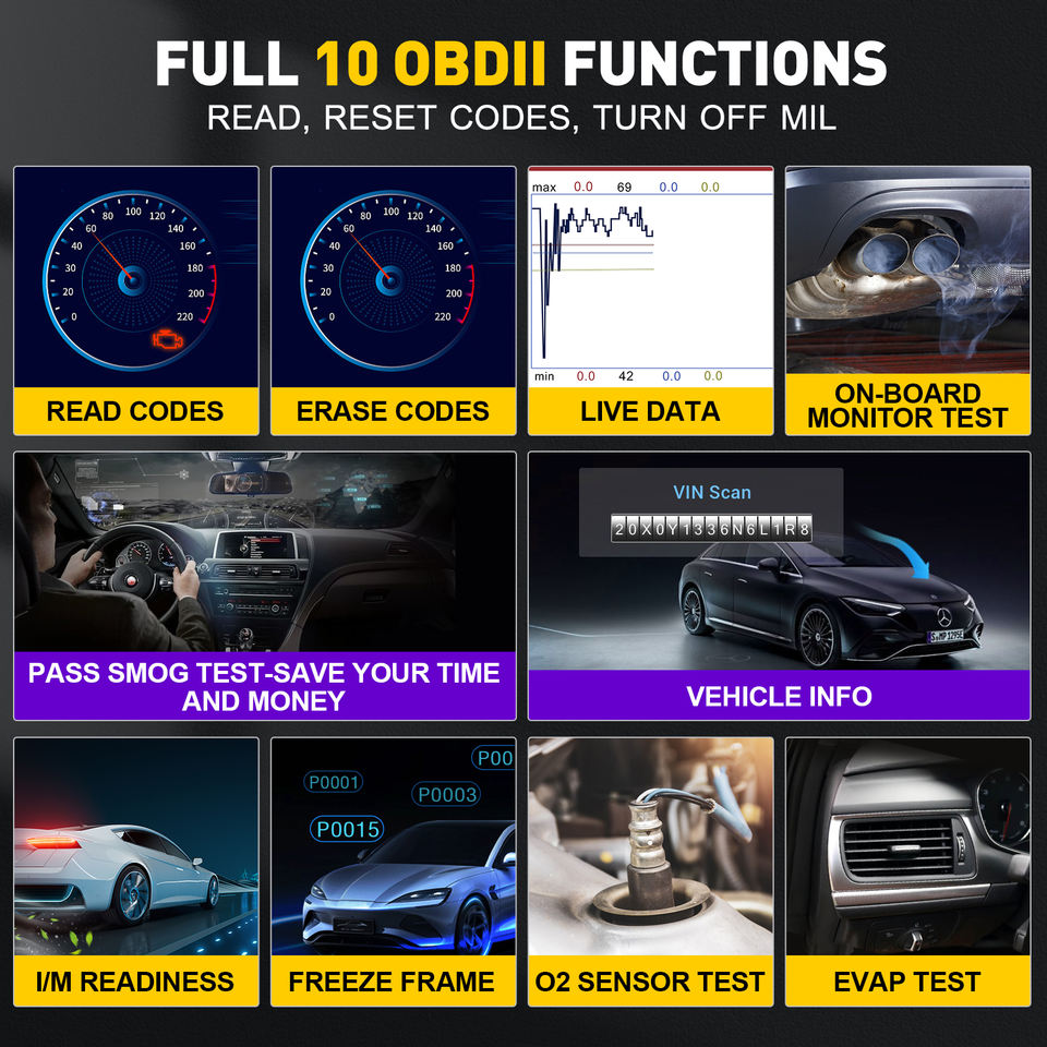 Combinación:OBD2, Lector de códigos, Escáner del diagnóstico del coche