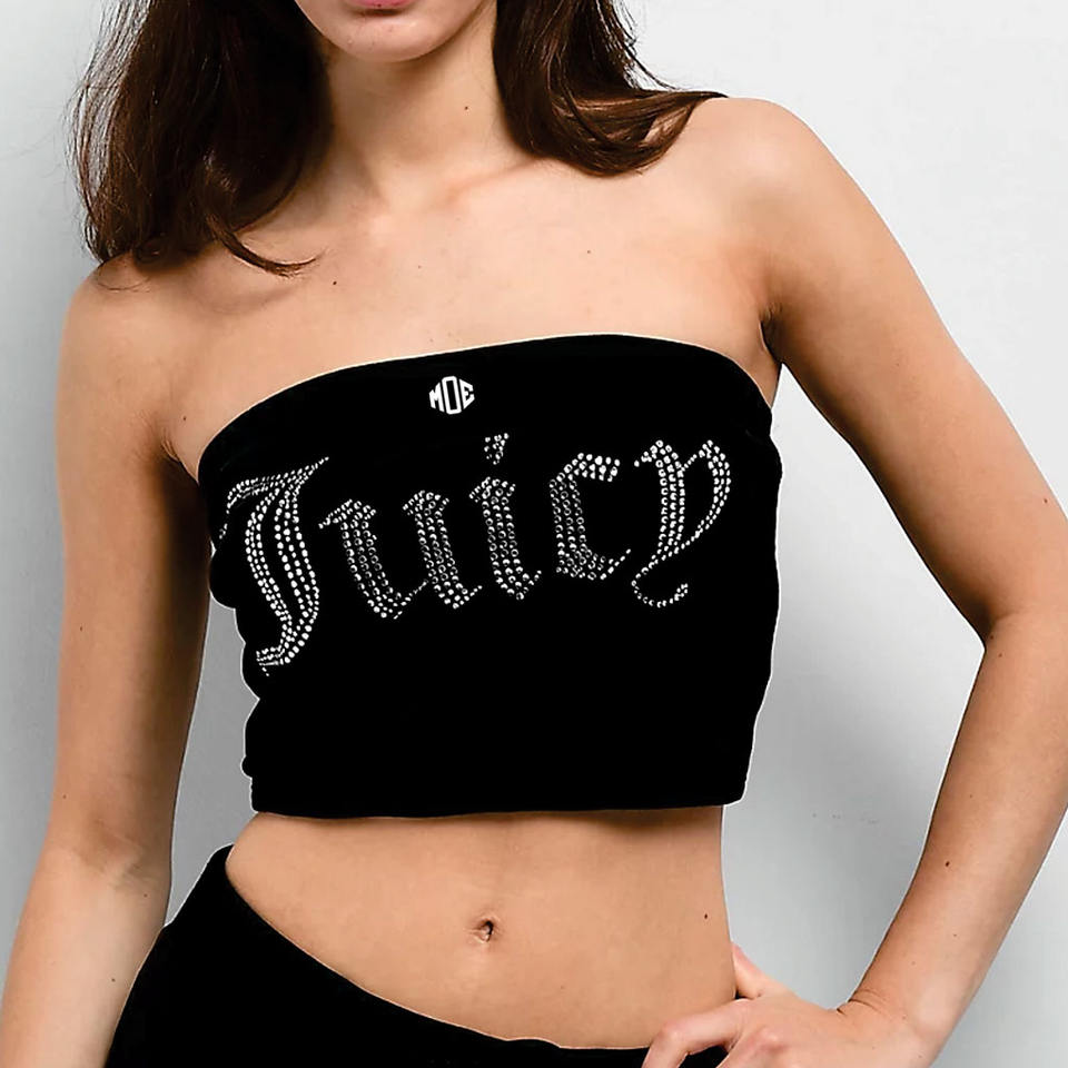 Top de moda urbana 2026 de lujo con pedrería, sin tirantes, tipo tubo, elástico, ajustado, corto, estilo bandeau, para mujer, fabricante de camisetas