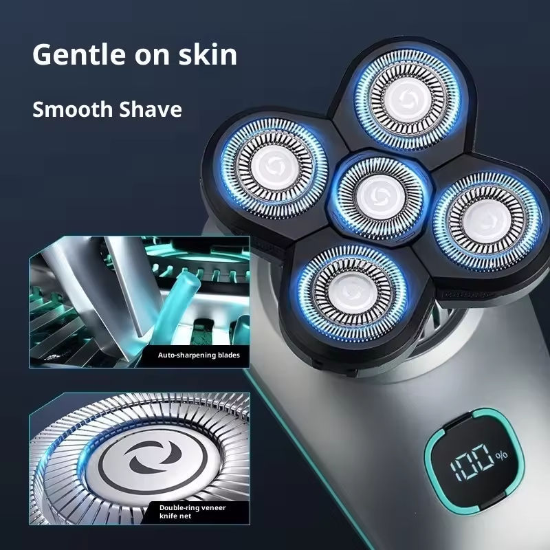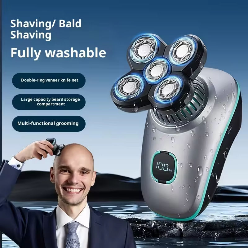Afeitadora Eléctrica Multifuncional 2026 para Hombre, con Pantalla LED, Resistente al Agua IPX6, 5 Cuchillas, Recargable por USB, para Cabeza Calva, Uso Doméstico y en Autocaravanas
