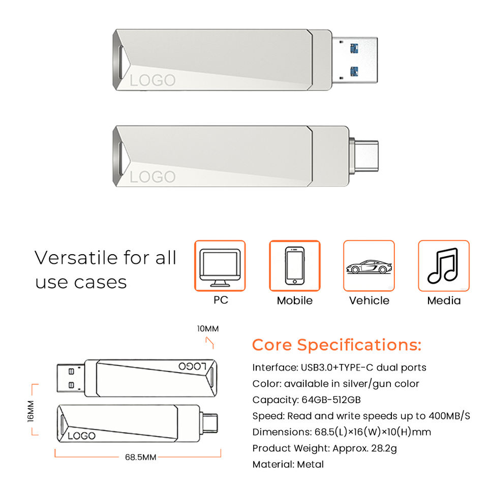 Nombre del producto:Unidad Flash USB Metálica de Doble Interfaz