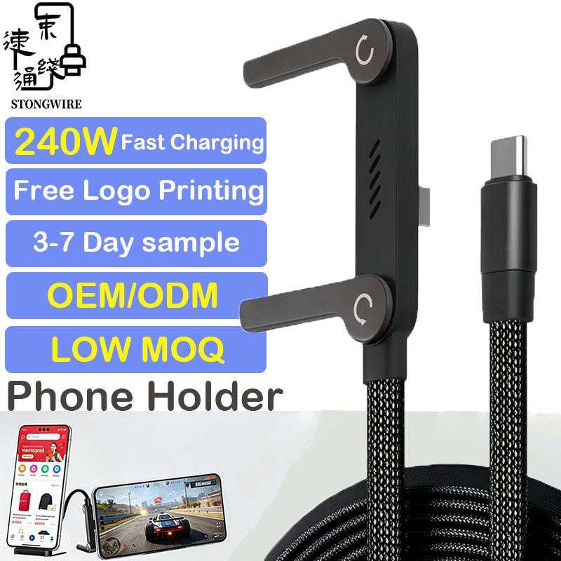 Cable de Carga Rápida de 240W NUEVO 2026 con Soporte para Teléfono, Cable Trenzado de Nailon USB C Tipo C, Cable de Datos PD3.1 con Chip E-MARKER para iPhone 17