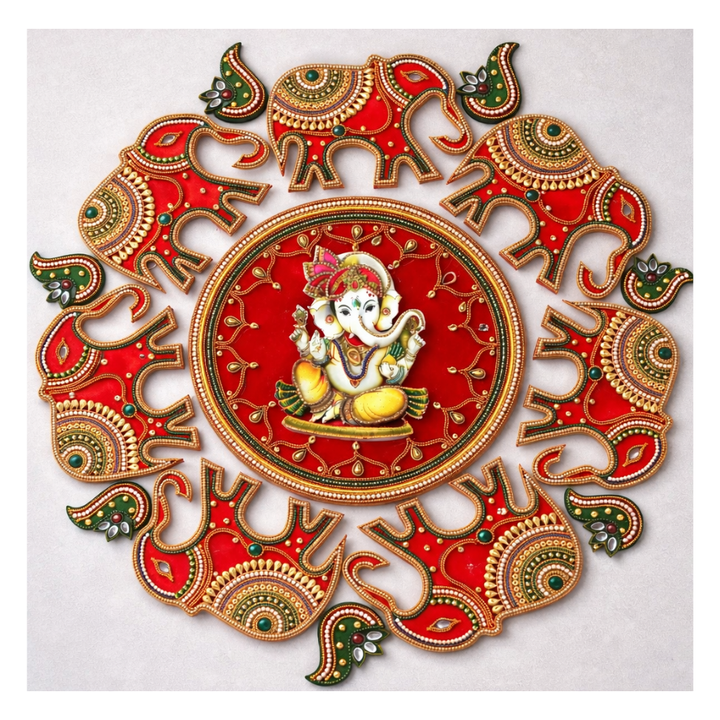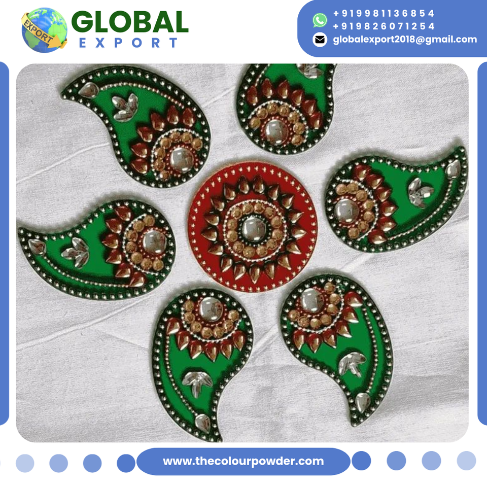 Novedad 2026: Rangoli Acrílico Tradicional con Tema Floral de Pavo Real, Certificado ISO, Reutilizable, Empaquetado en Cartón para Exportación, Festivo Diwali