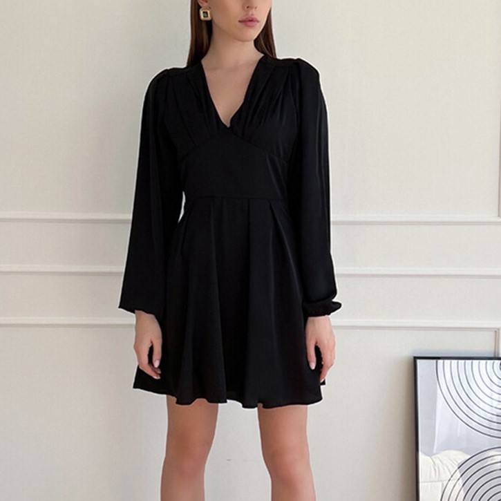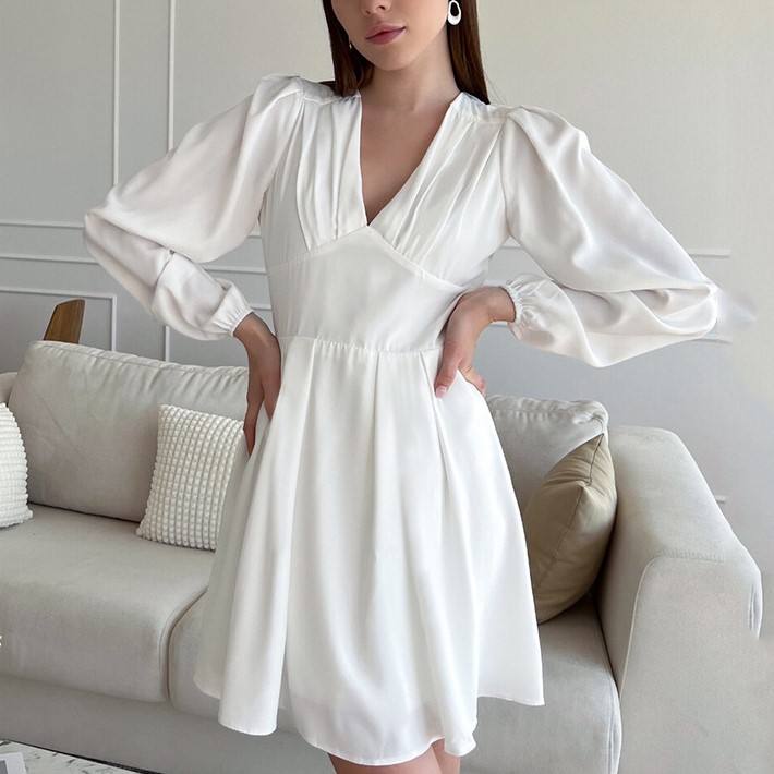 Vestido Midi Vintage de Algodón con Manga Larga y Escote Profundo en V, Estilo Sexy y Elegante para Otoño 2026
