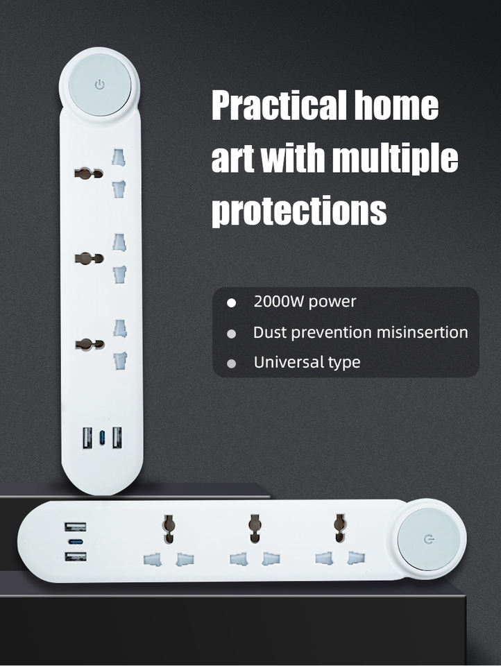 Nuevo en 2026: Regleta Multifuncional con 3 Tomas de Corriente 10A 2000W, Cable de Extensión con 2 USB y 1 USB C para WISH