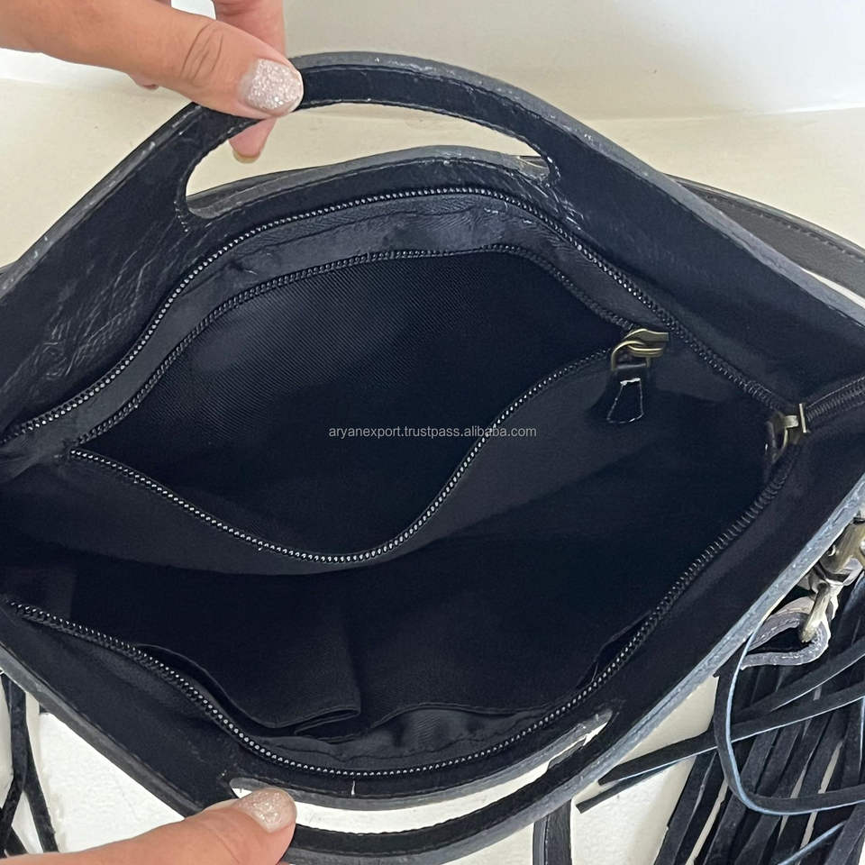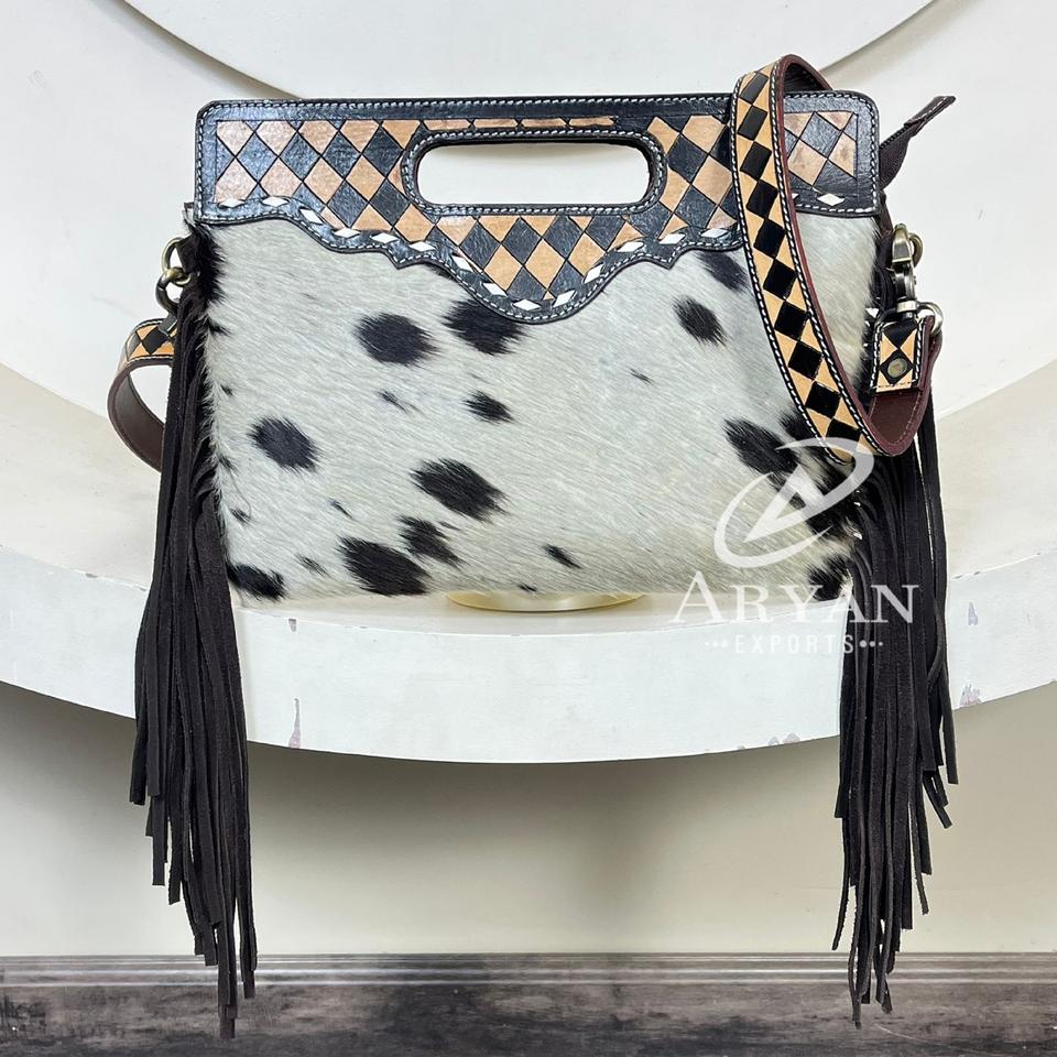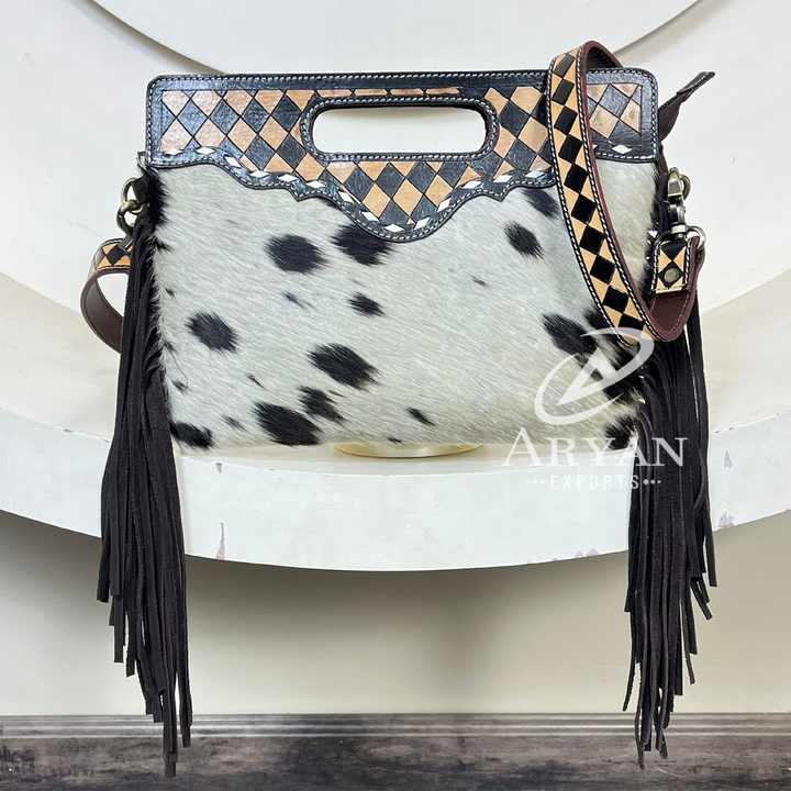 Nombre del producto:Bolso bandolera de piel de vacuno repujada a cuadros con flecos y asa