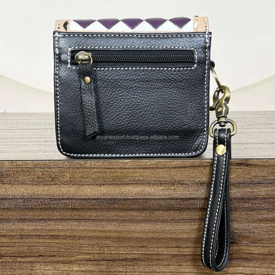 Monedero de Cuero Genuino Hecho a Mano con Diseño a Cuadros 2026 para Mujer, Tarjetero y Bolsa para Dinero con Correa de Muñeca
